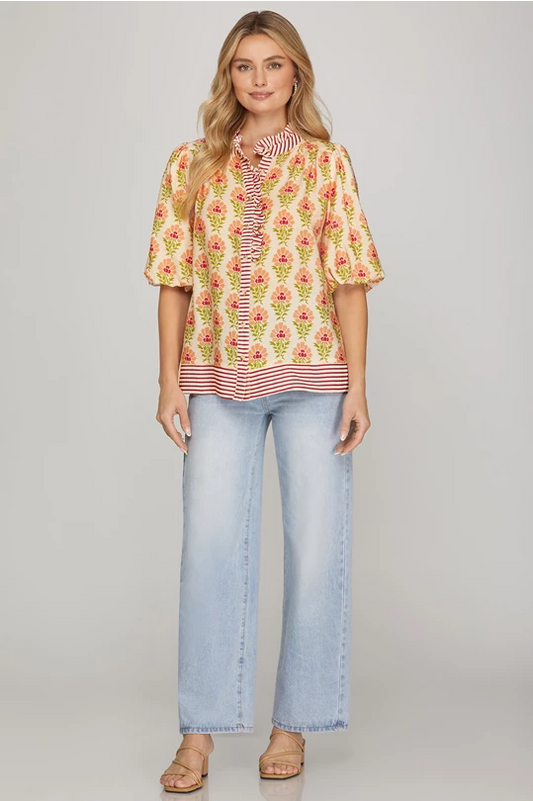 RUFFLED NECK TOP