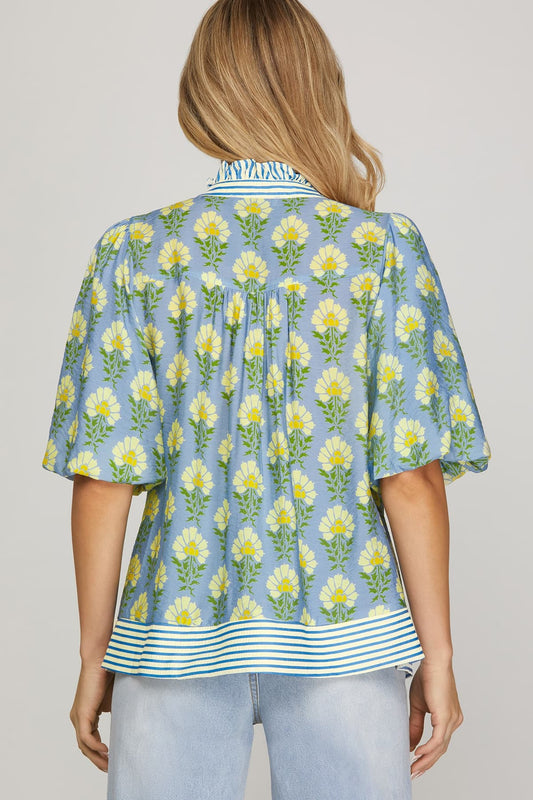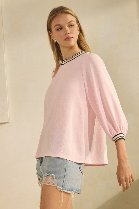 SHORT SMOCKED SLEEVE TOP